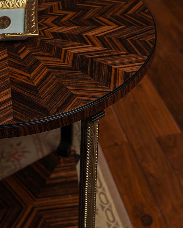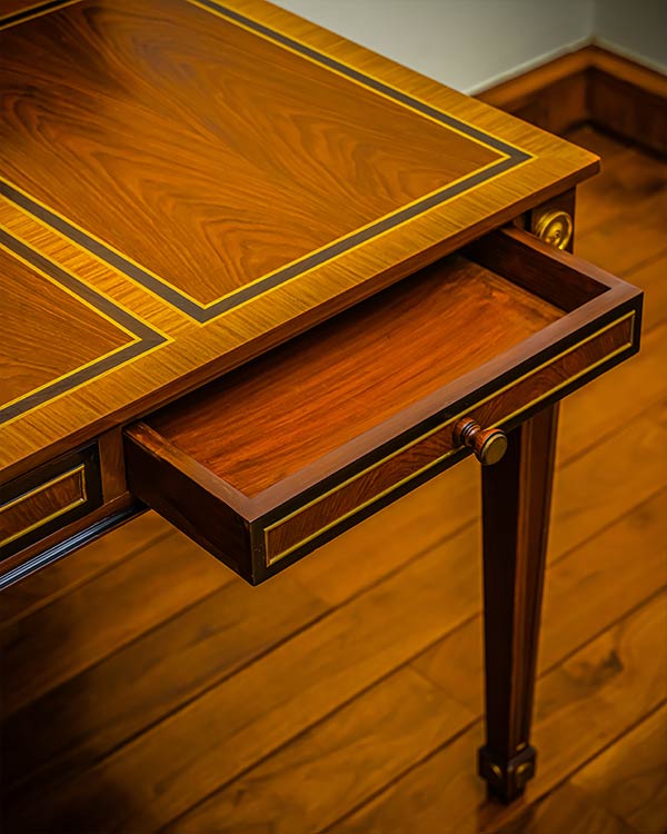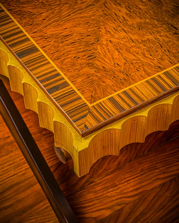 Cabinet-making, veneering, marquetry, and finishing are carried out by master hands. Precision is measured at every stage, from structure to final polish.